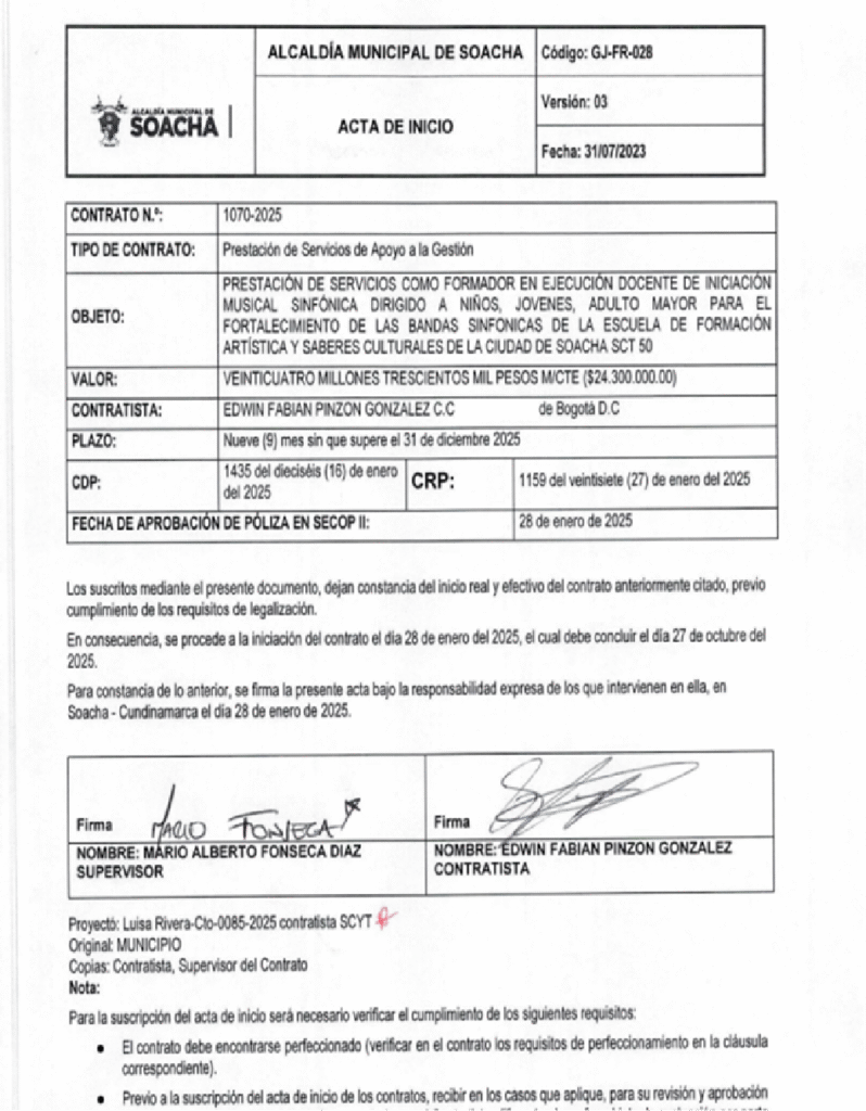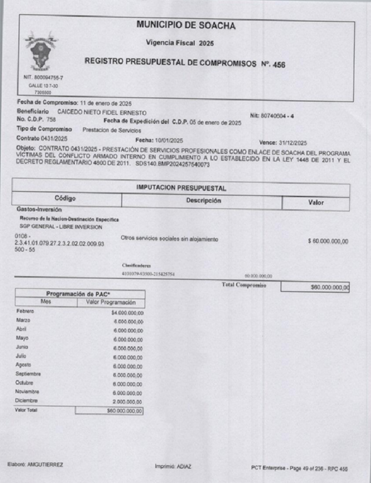 - Fidel Caicedo, militante de Soacha Humana y contratista de la Alcaldía de Soacha en 2025 por 60.000.000 de pesos.
