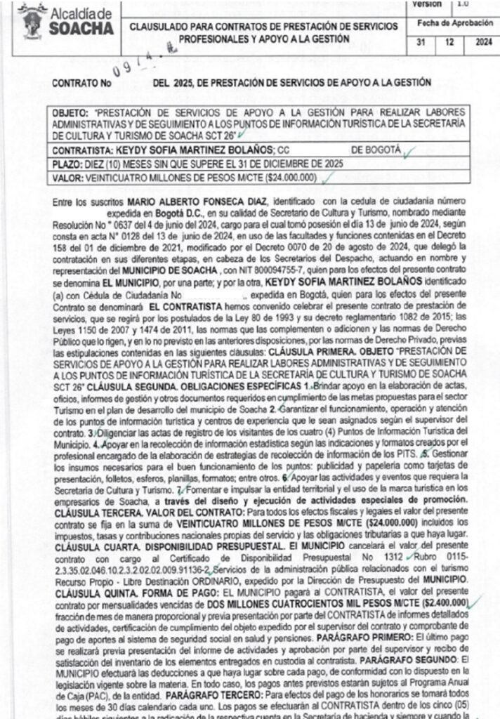 - Keydy Sofía Martínez, miembro del equipo de Natalia Moreno y contratista de la Alcaldía de Soacha en 2025 por 24.000.000 de pesos.
