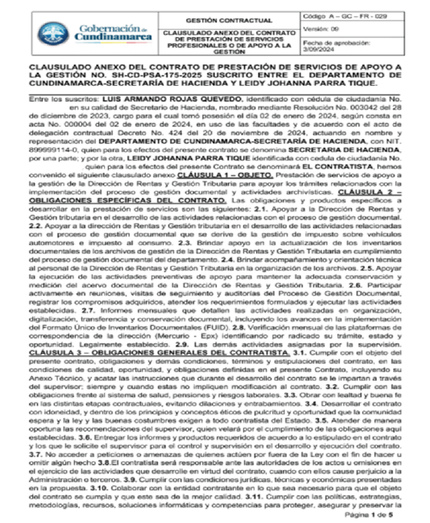 - Leidy Parra, militante de Soacha Humana y contratista de la Gobernación de Cundinamarca en 2024 por 13.500.000 pesos y en 2025 por 18.047.000 pesos.
