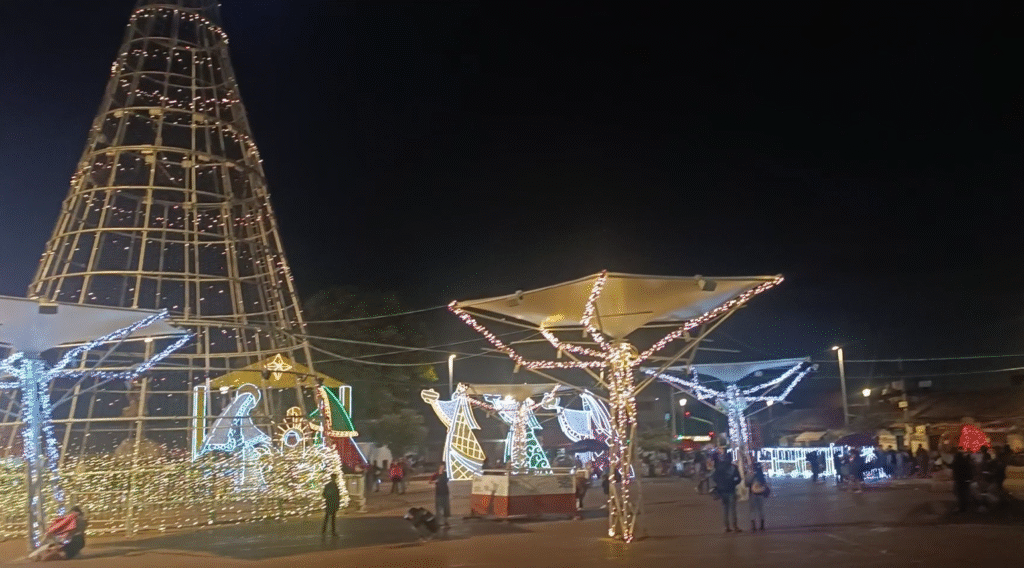 El recorrido finaliza en el parque del municipio, un espacio lleno de vida, luces y música, ideal para caminar, comer algo rico y cerrar la noche con el mejor ambiente navideño.